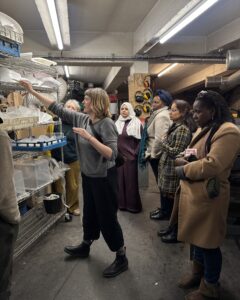 Another interesting aspect of this insightful event was the sewing session for beginners. The sewing session worked up an appetite for us, and lunch followed, catering provided by Afro-Fusion Cuisine. The guided tour through the recycling facilities for clothes and plastics was up next, and I found the whole experience fascinating. Lauren Hooper, manager of Rags to Riches, was our guide, and she gave detailed information about how these facilities are run, along with the machines that are used to do so. ย